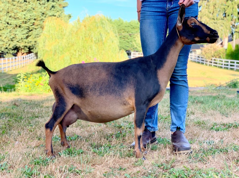 Snowberry relocated to Misfit Acres in 2022. Snow has incredible dairy strength, gorgeous mammary system, and so much more. Snow has a sweet personality too!
